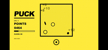 puck is the new game where you can feel like a master at launching things, puck uses air hockey like mechanics and collisions with physics to bounce off walls for a satifying feel its relaxing and can be a grind. score points by bouncing off walls or launching your puck at the HOLOPUCKS, the circles this game was made in 3 days built to have endless fun!